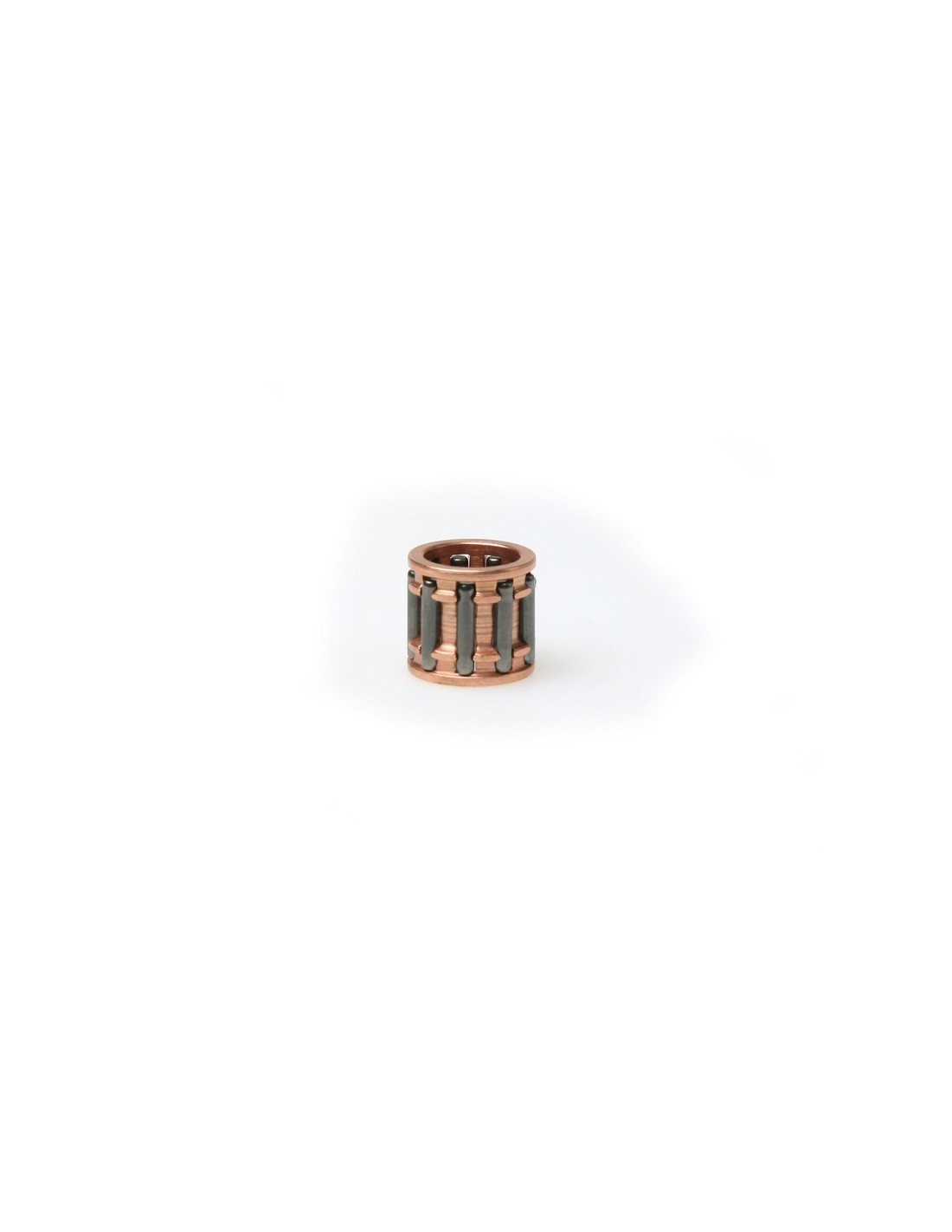 Los rodamientos de agujas Malossi son rodamientos independientes listos para su ensamblaje y fabricados de acero de alta tensión con alojamientos para la inserción y rotación axial de los rodillos. Estos dispositivos están diseñados para permitir el movimiento recíproco entre dos objetos, restringiendo la rotación de la jaula y alojando los elementos giratorios con dimensiones reducidas en general, peso insignificante y fricción reducida. Son componentes esenciales en motores de combustión interna que, por definición, tienen múltiples elementos giratorios. Como se puede ver en la imagen, un conjunto de rodamiento de agujas está compuesto por un cuerpo (jaula) con alojamientos en los que se colocan los rodillos que se mantienen en su lugar pero son libres de rotar axialmente. Es, de hecho, sobre los rodillos donde descansa la superficie giratoria externa y la rotación entre los dos componentes se lleva a cabo sobre estos.