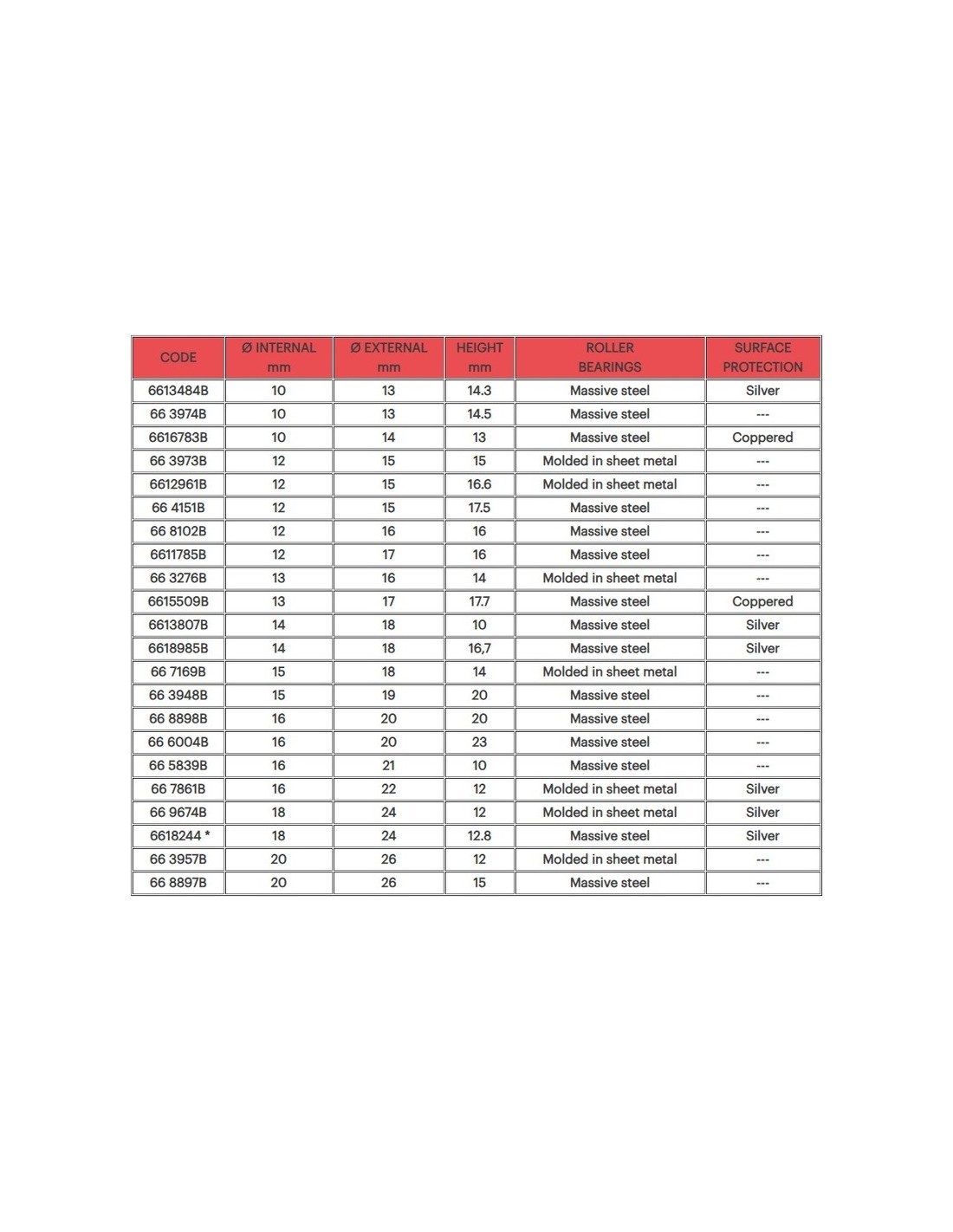 Limitado a una selección de aplicaciones, los rodamientos de rodillos cuentan con una protección superficial de aluminio que garantiza una mayor resistencia al desgaste y una fricción rotacional aún reducida. Para aplicaciones que requieren una resistencia aún mayor, se ha utilizado protección superficial de cobre, un material que, además de reducir la fricción y proteger del desgaste, asegura una mejor dispersión del calor, permitiendo que la jaula funcione correctamente incluso cuando está sujeta a cargas elevadas en atmósferas de alta temperatura.