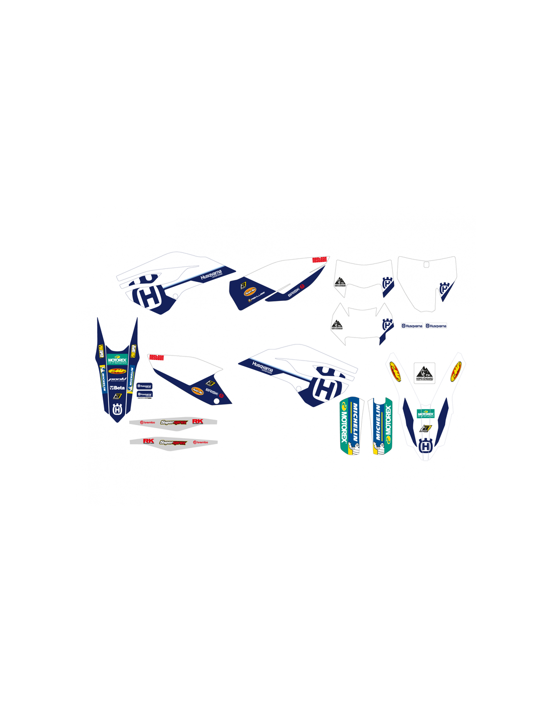 - Adhesivos para: guardabarros delantero y trasero, tapas de radiador, basculante y protectores de horquilla