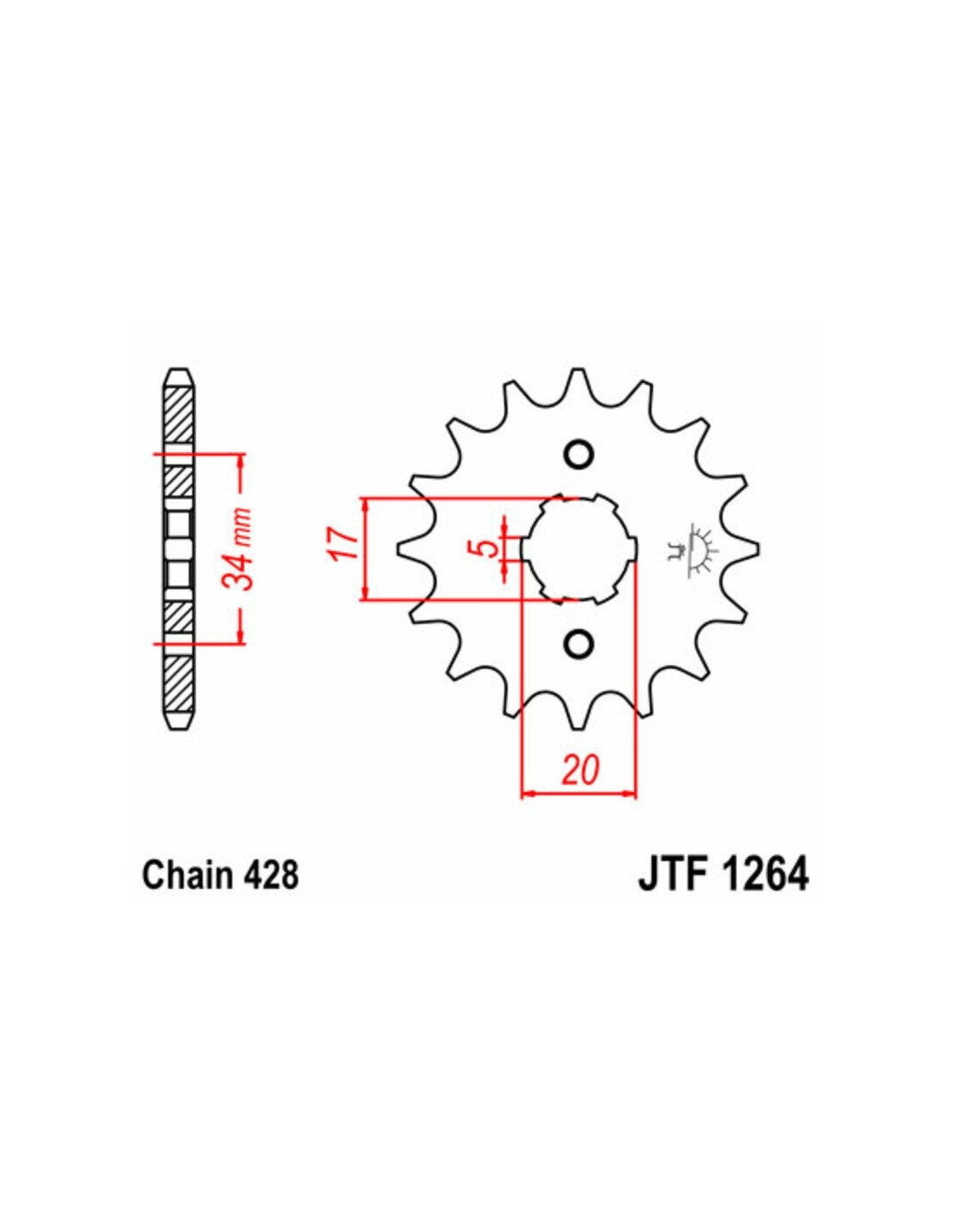 - Piñón de acero estándar: Hecho de acero de alta resistencia, este piñón asegura un rendimiento fiable y una excelente conexión con la cadena. Ideal para motocicletas que requieren alta durabilidad y estabilidad.