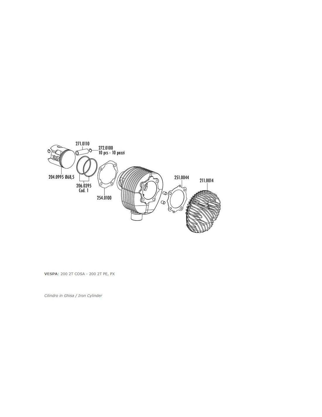 Kit de cilindro de fundición POLINI para Vespa 200 PE-PX.