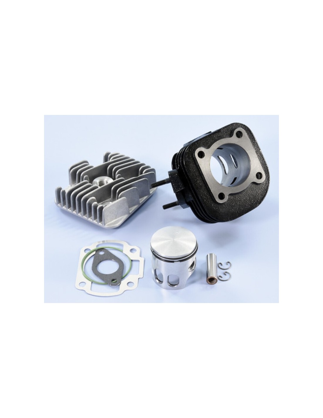 El cilindro es de hierro fundido, con 6 puertos. Está mecanizado con máquinas especiales para conseguir un alto nivel de prestaciones, con paredes deslizantes de rugosidad controlada para un mayor deslizamiento cilindro-pistón. Los diagramas y transferencias de descarga están específicamente diseñados y fabricados para alcanzar prestaciones Racing y trabajar en armonía tanto con los silenciadores Originales como con los del Scooter Team Polini.