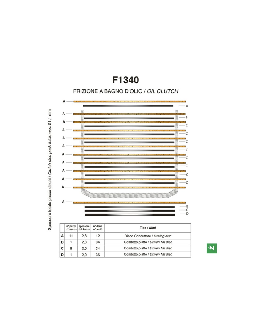 - Espesor total del paquete de discos 51,1mm