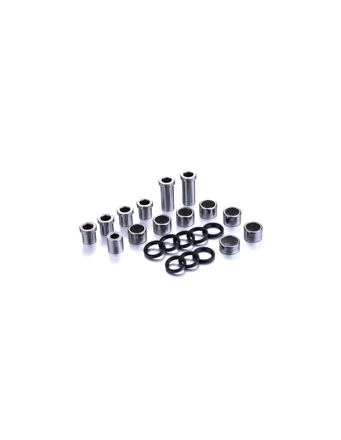 FACTORY LINKS kits contain all elements required for a full service of your linkage (including the lower shock absorber). The needle bearings, collars, pins and oil seals are specifically manufactured in order to reach OEM quality requirements, in terms of materials, dimension tolerances, hardness and surface roughness. This brings your bike back to its former condition as defined by the manufacturers.