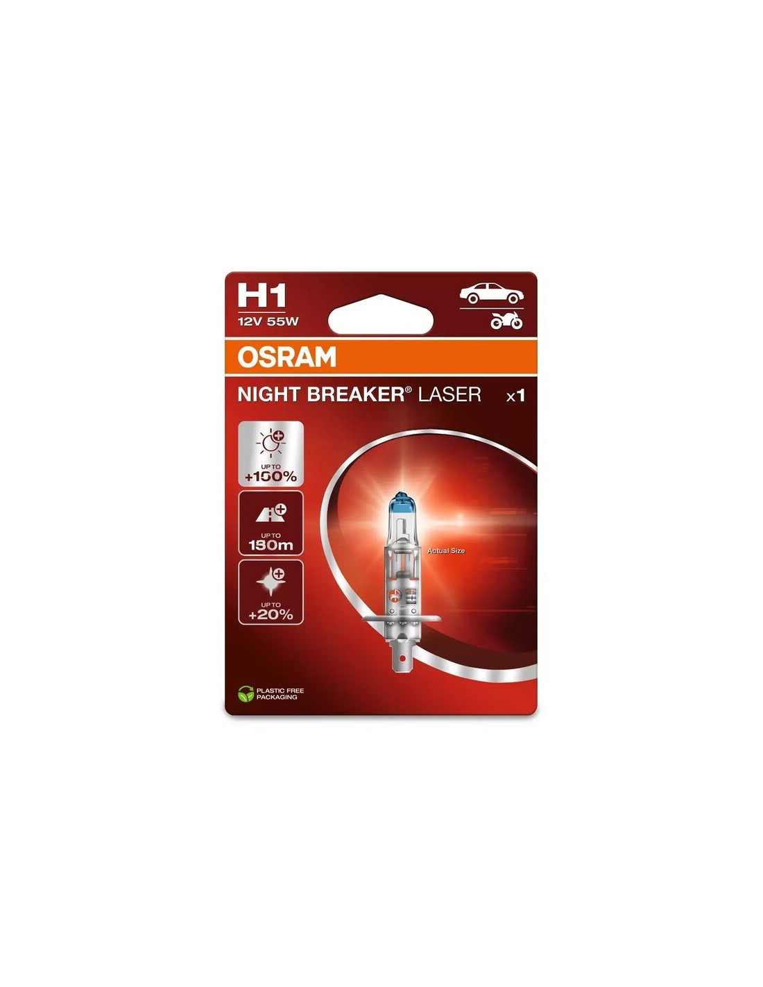 Gracias a la innovadora tecnología de ablación láser, las bombillas halógenas NIGHT BREAKER LASER proporcionan hasta un 150% más de luz que el mínimo legal. El filamento de alta tecnología proporciona un impulso de luz adicional. Estas bombillas proporcionan una longitud de haz de hasta 150 m y una luz hasta un 20% más blanca que la mínima legal. Una visibilidad más clara y mejorada puede ayudar a los conductores a identificar y reaccionar más rápidamente ante los peligros del tráfico. Por último, pero no menos importante: OSRAM NIGHT BREAKER LASER impresiona con su diseño único (nombre del producto grabado con láser) y su amplia gama (H1, H3, H4, H7, H8, H11, HB3, HB4).