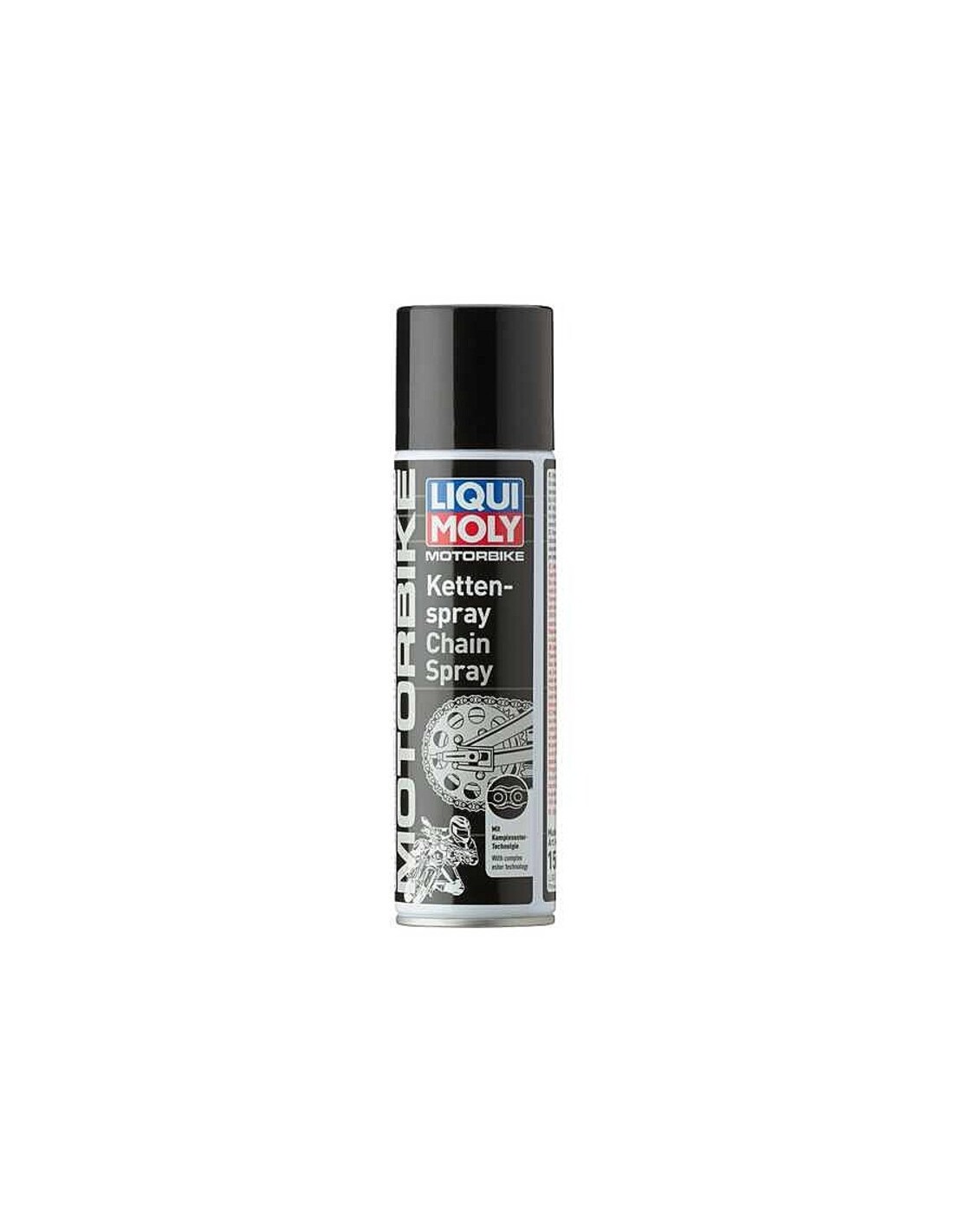 Antes del tratamiento, recomendamos limpiar la cadena con Motorbike Limpiador de cadenas y frenos (n° de art. 1602). A continuación, agitar bien la lata y rociar la cadena. Una vez se ha evaporado el disolvente, el lubricante adquiere su consistencia y adherencia definitivas.