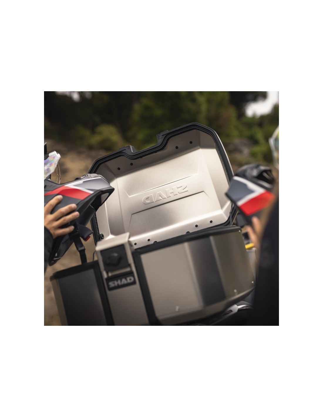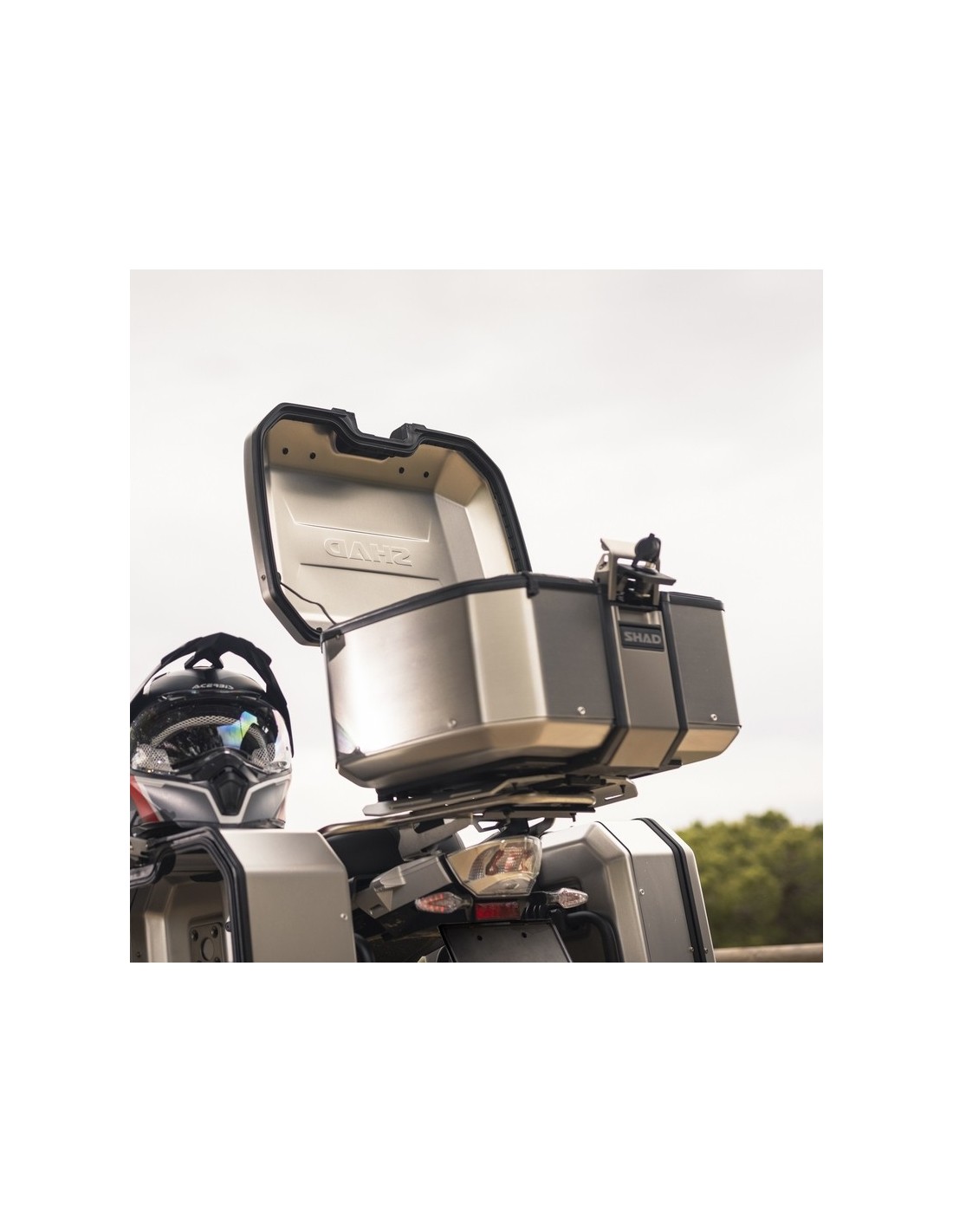Maleta top TERRA TR55 con capacidad para dos cascos modulares y que destaca por ser la maleta de aluminio más ligera del mercado con 5,4 Kg. Diseñada y fabricada 100% en Barcelona. Su diseño innovador minimiza el impacto visual en la motocicleta. La maleta top TERRA TR55 ha sido premiada con el ABC Awards, gracias a su diseño centrado en solucionar aspectos claves para el uso en motos de aventura.