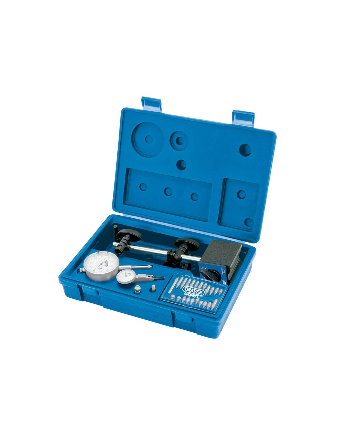 Kit de 2 relojes comparadores, con base magnética y 24 accesorios. Precisión: 0'01 mm (1/100”)Contiene: Reloj comparador con capacidad de 0 a 25 mm.Reloj comparador con palpador y capacidad de 0 a 1'5 mm.Base magnética,22 puntas y 2 adaptadores 6 y 8 mm""""