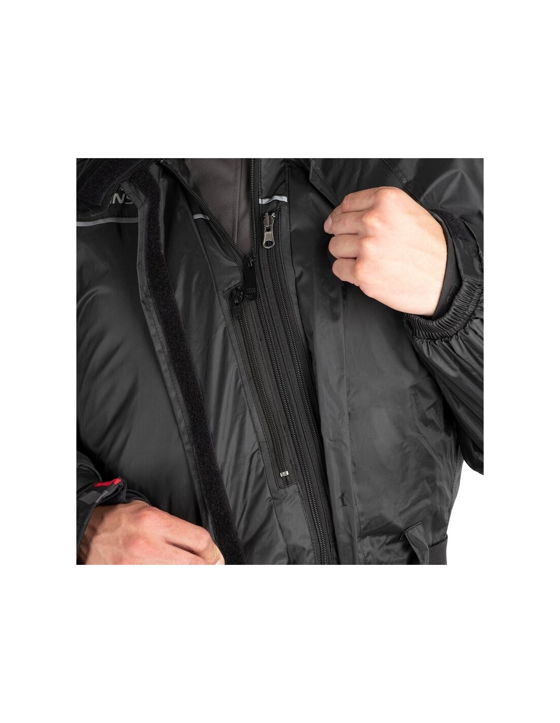 Protección ligera contra las inclemencias del tiempo, de diseño sencillo pero cuidado. Mono totalmente impermeable con medio forro, ajustadores y detalles reflectantes de 360°.