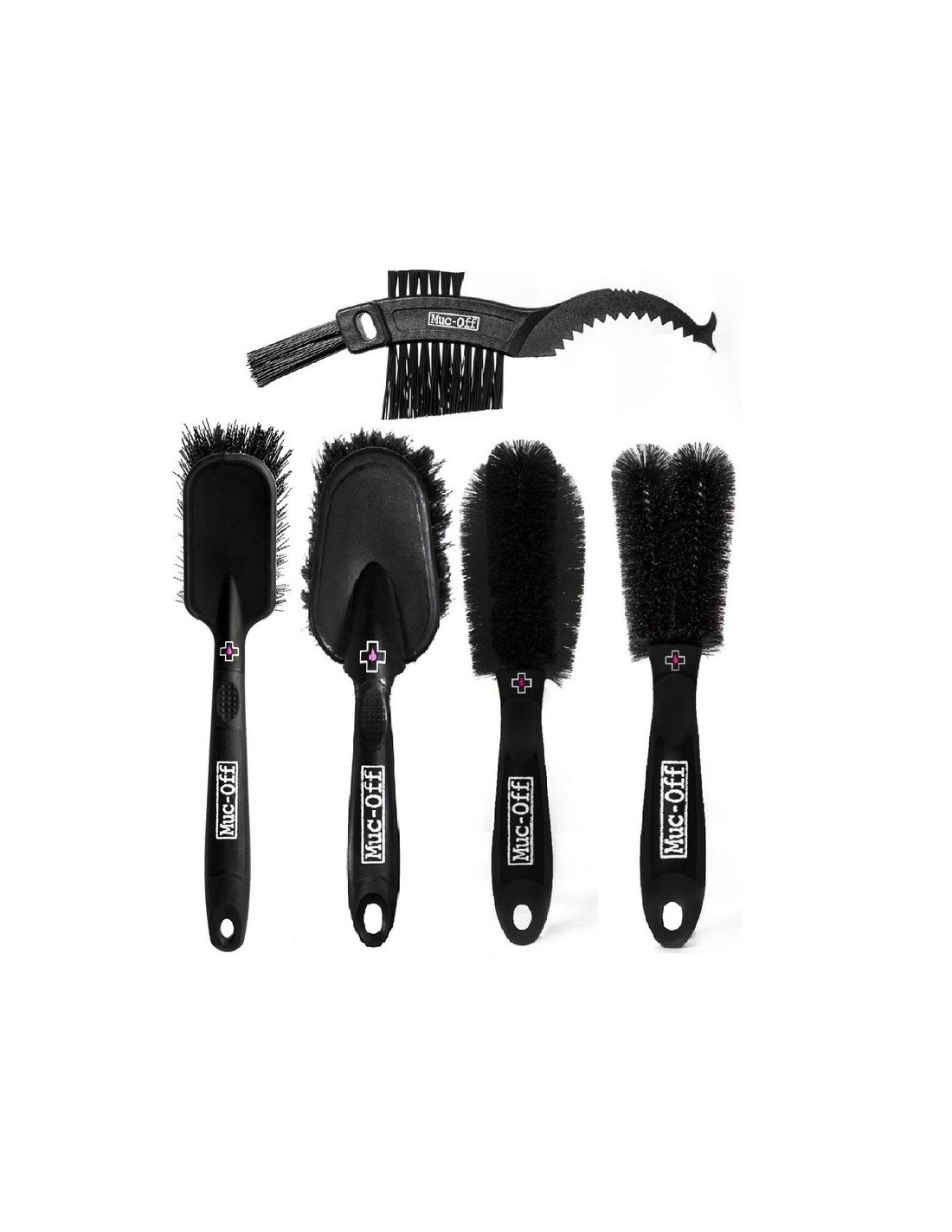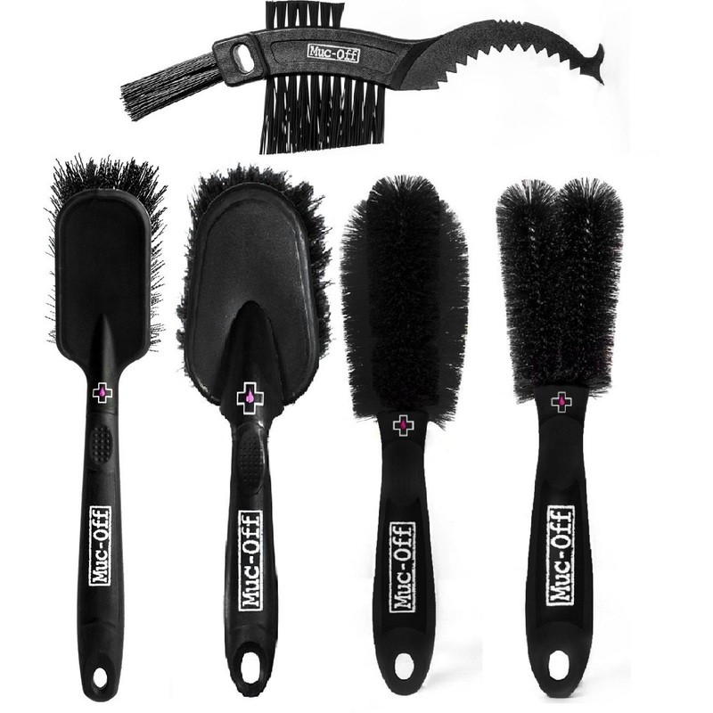 El kit contiene:Cepillo Soft Washing: con cerdas sinterizadas para limpiar chasis y componentes similaresCepillo Detailing: ideal para retirar barro y otra suciedad arrastrada durante el caminoCepillo Claw: cuerpo de gran calidad, con tres cabezales de cepilladoCepillo Wheel & Component: diseño especial para limpiar llantas y radios Cepillo Two Prong, muy útil para eliminar la suciedad de difícil acceso Los cabezales se pueden reposicionar