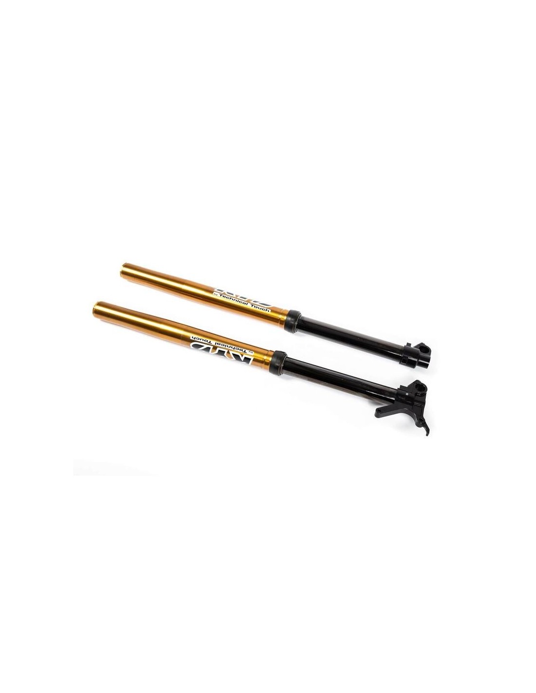 The KYB Factory Kit fork is a double sided closed cartridge fork with one spring each. The fork is used by many world championship teams in motocross and supercross. The KYB kit fork has a very precise and very adjustable damping. A very good response of the fork is achieved by black DLC coated dip tubes, all internal components are also coated and thus the internal friction is reduced to a minimum. The outer tubes are Kashima coated and the fork feet are CNC machined for exact precision and torsional stiffness. Another advantage of the fork is a special spring support which makes the fork more progressive at the end of travel for a softer landing.