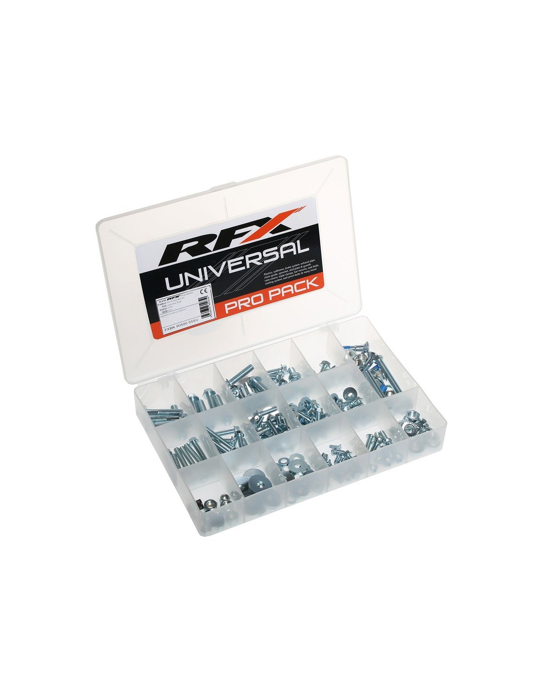 - Los paquetes de tornillos RFX Race Series Pro son ideales para tenerlos en tu caja de herramientas o garaje para cuando necesites ese tornillo o tuerca que te falta.