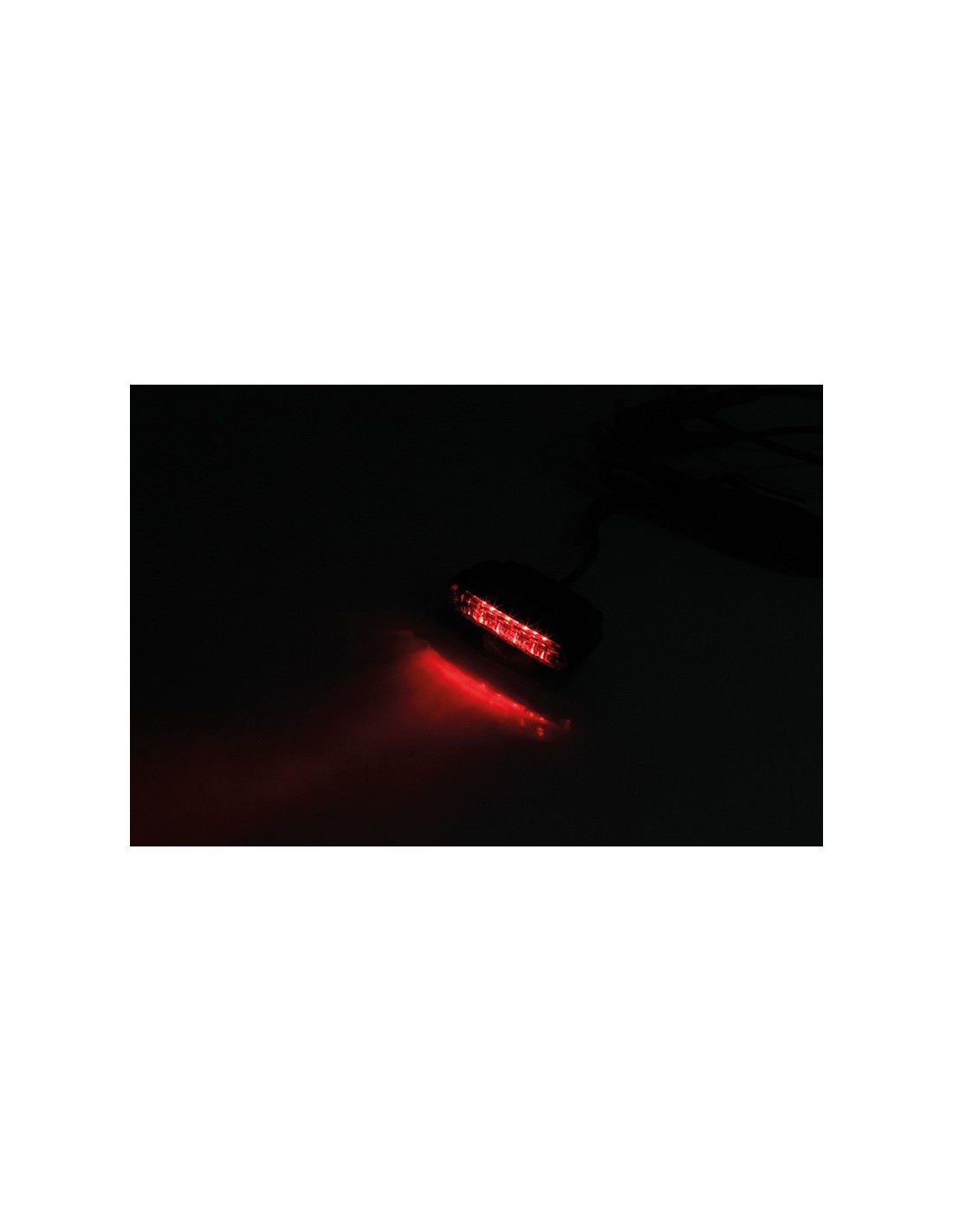 Potente luz trasera LED en una carcasa metálica de color negro mate con cristal rojo, homologación E.