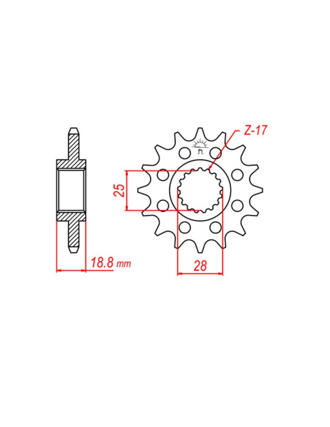 - Sprockets in steel alloy SMC420 with high wear resistance