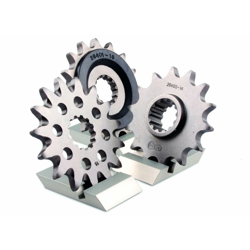 Los piñones AFAM se fabrican en una aleación de acero de alta resistencia y se mecanizan con precisión. La calidad de estos piñones ha convertido a AFAM en uno de los líderes mundiales en piezas de transmisión para motocicletas.