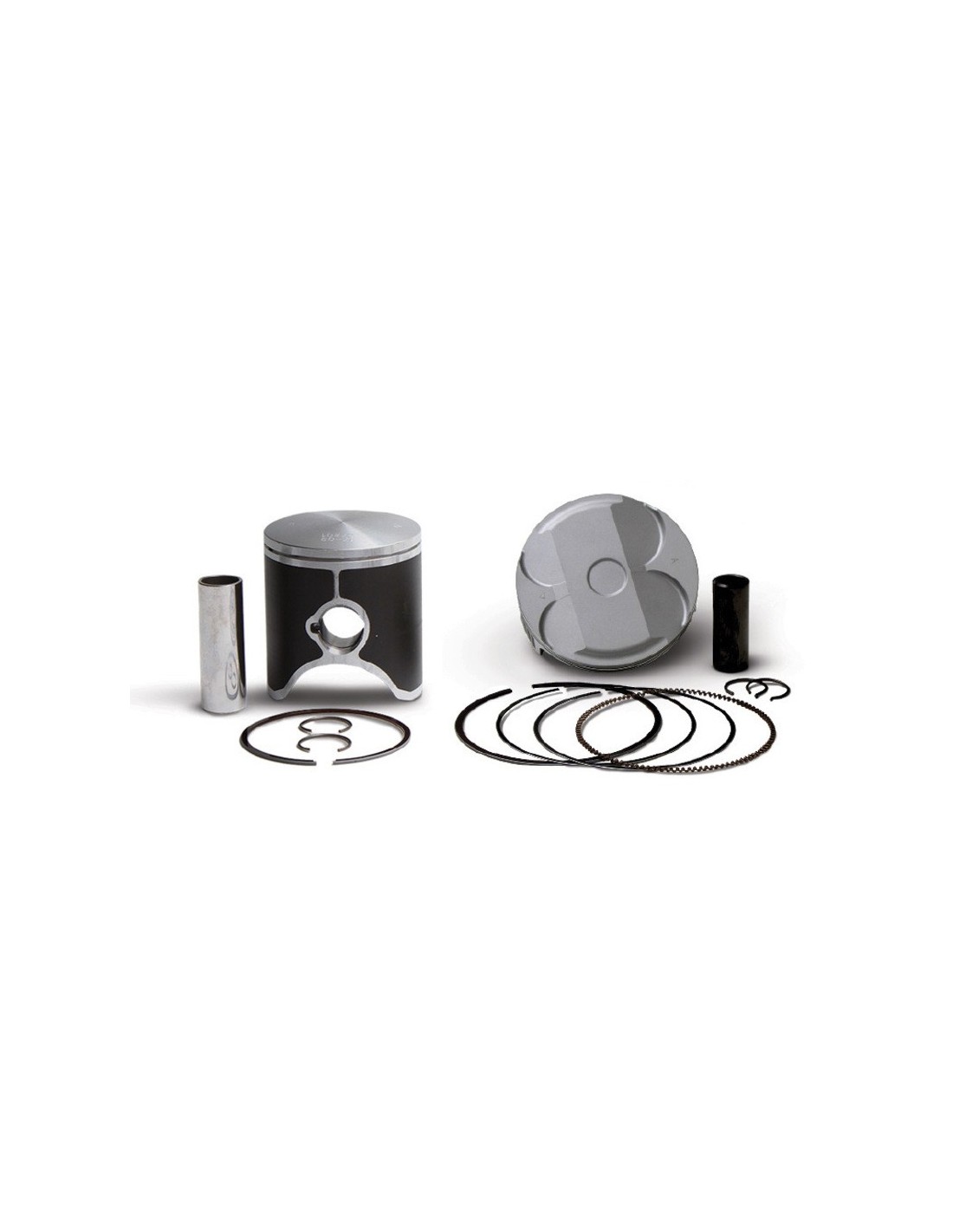 - Los pistones de 2 tiempos tienen un contenido de silicio del 18% que disminuye el desgaste y la expansión térmica, lo que permite unas tolerancias de funcionamiento más ajustadas para obtener más potencia, menos ruido y una mayor vida útil.