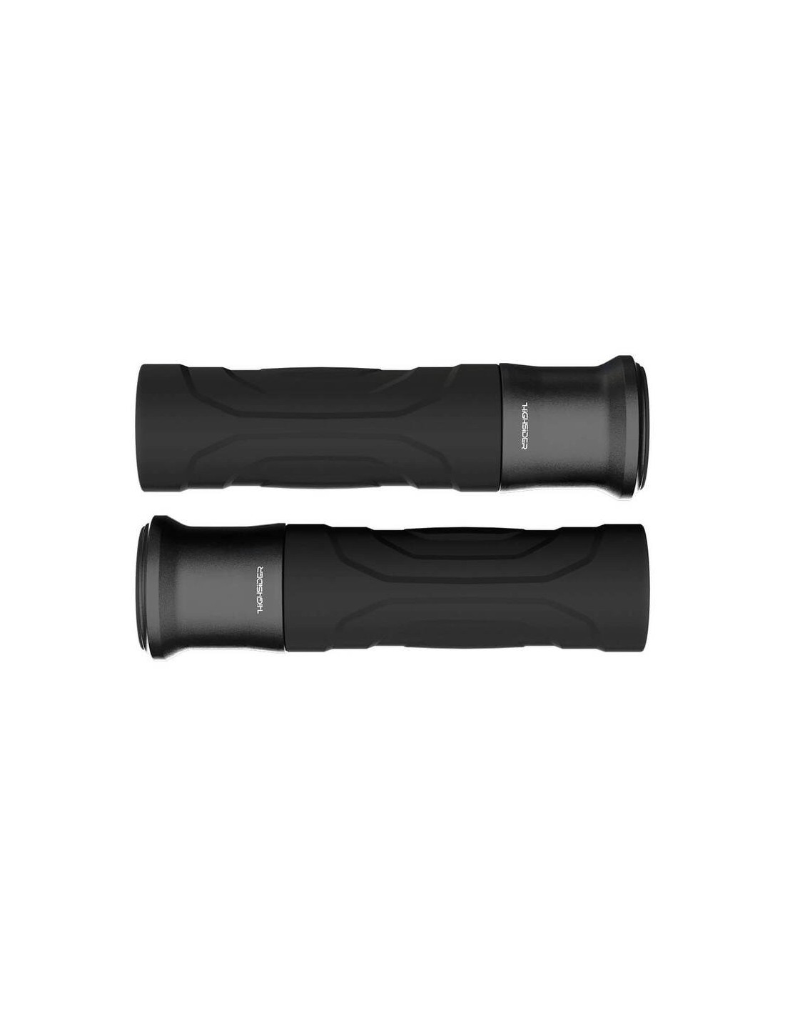 Puños de manillar HIGHSIDER ESAGANO-RS de goma, negro con anillo de aluminio negro, tapones terminales desmontables. Tapones, longitud: 125 mm, para manillar de 22,2 mm, par.