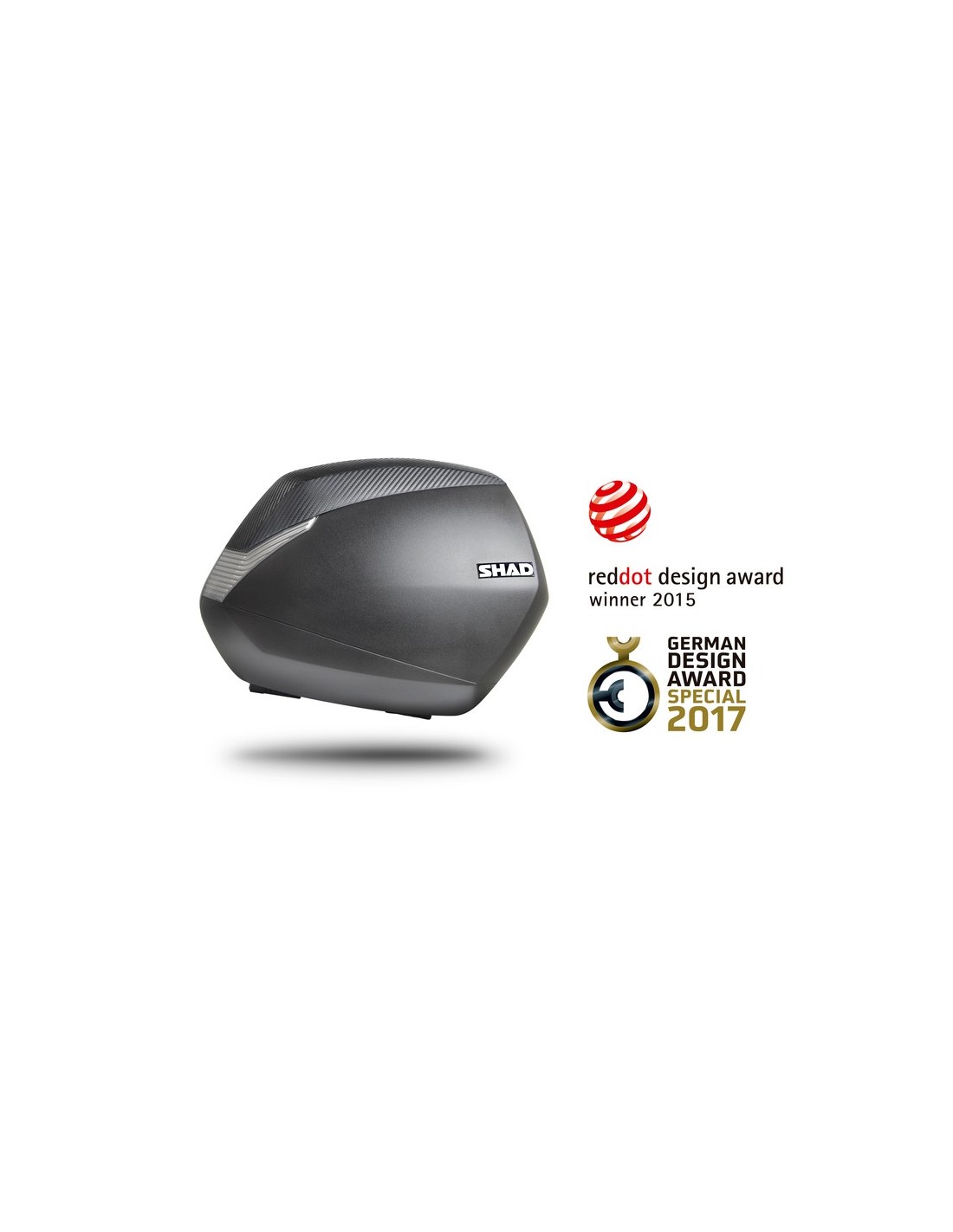 Las maletas laterales SH36 Carbono de SHAD destacan por su diseño innovador y a la vez funcional, con gran capacidad para un casco modular talla XXL y su ligereza respecto a otras maletas laterales. La tecnología de vanguardia y el diseño innovador de la maleta SH36 Carbono la han hecho acreedora del prestigioso premio de diseño Reddot Design Award 2015, una referencia entre diseñadores y fabricantes del sector. También ha ganado el premio German Design Award Special 2017.