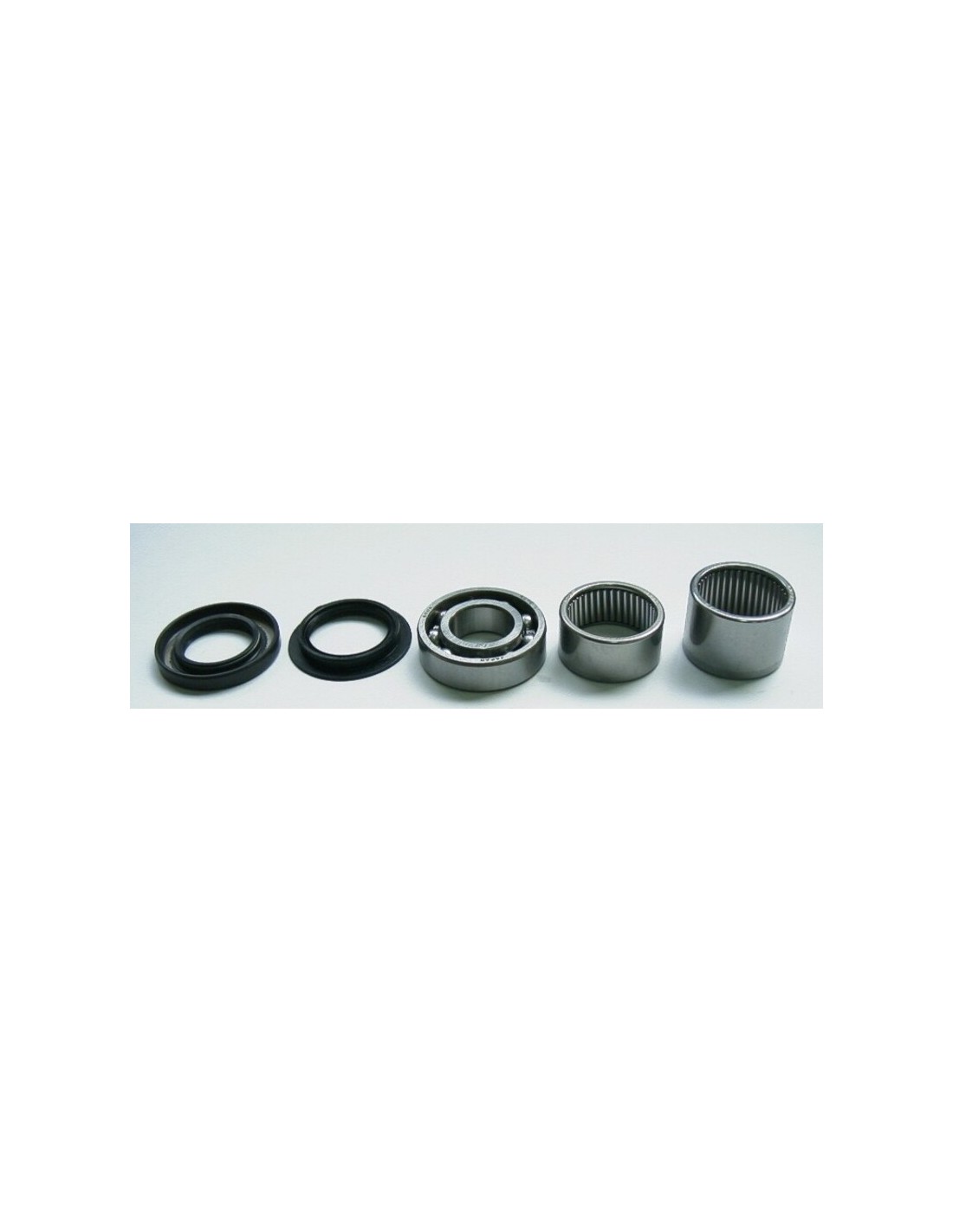 Incluye todos los rodamientos, juntas y casquillos necesarios para renovar este imprescindible eje de la moto.