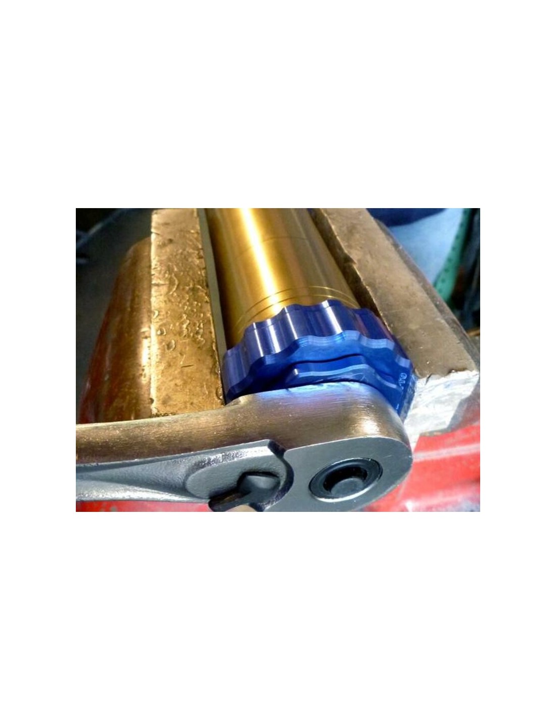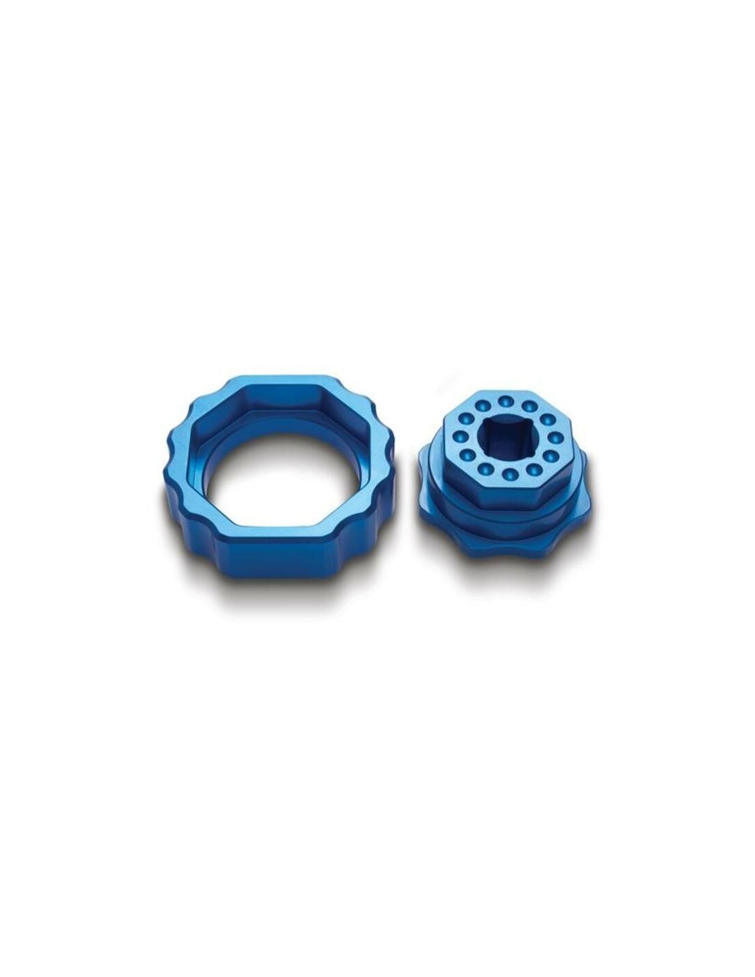 Herramienta para desmontar el tapón de horquilla, y/o el cartucho de compresión, en horquillas Kayaba de doble cámara. El aro exterior encaja con tapones de horquilla octogonales de 49 mm, en 8 posiciones. Su interior sujeta el cartucho para que podemos retirarlo del tapón. Medidas de 1'3 cm2.