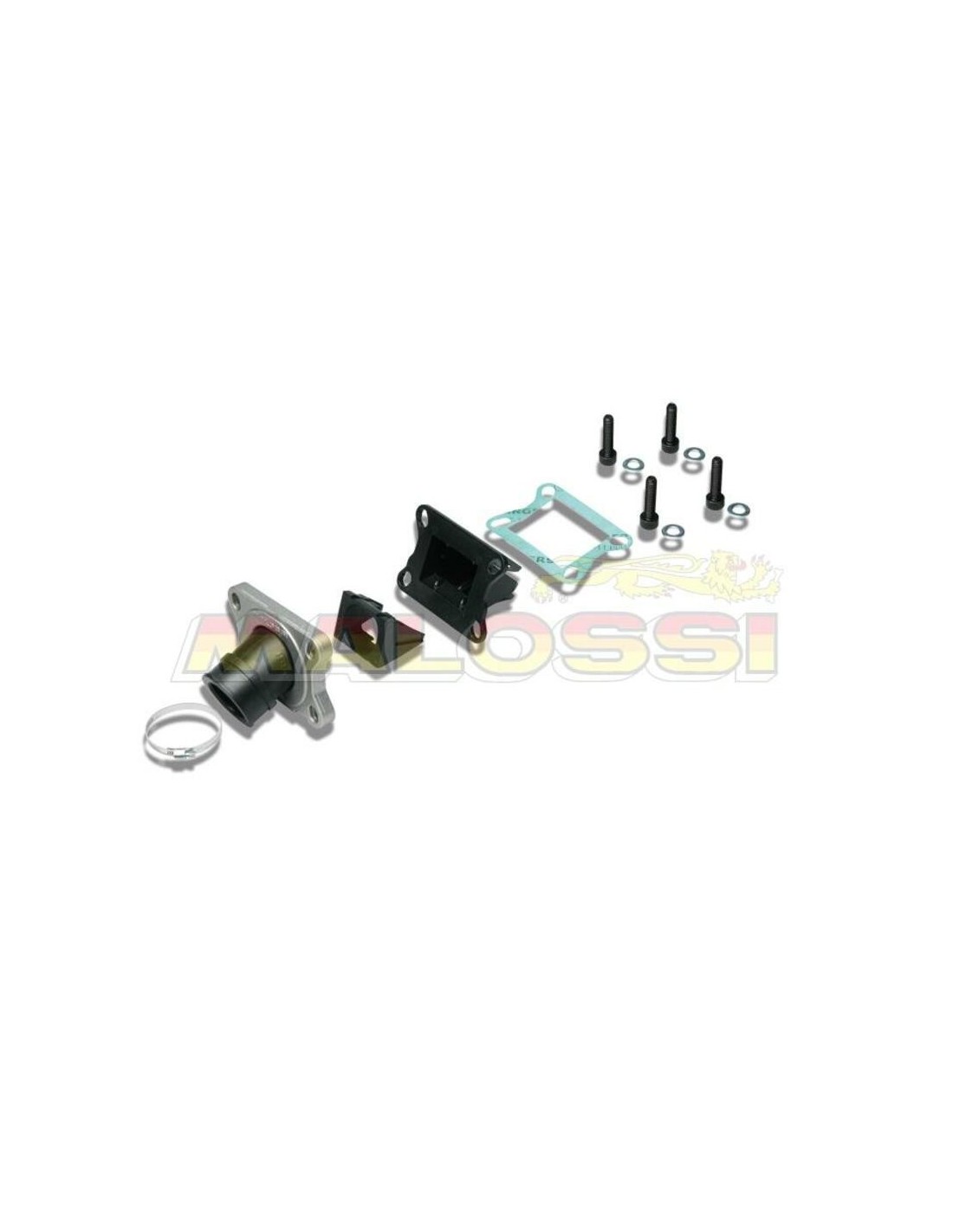 Los conductos de admisión Malossi se suministran desmontados para facilitar la orientación de la manga antes de instalarla en el carburador.