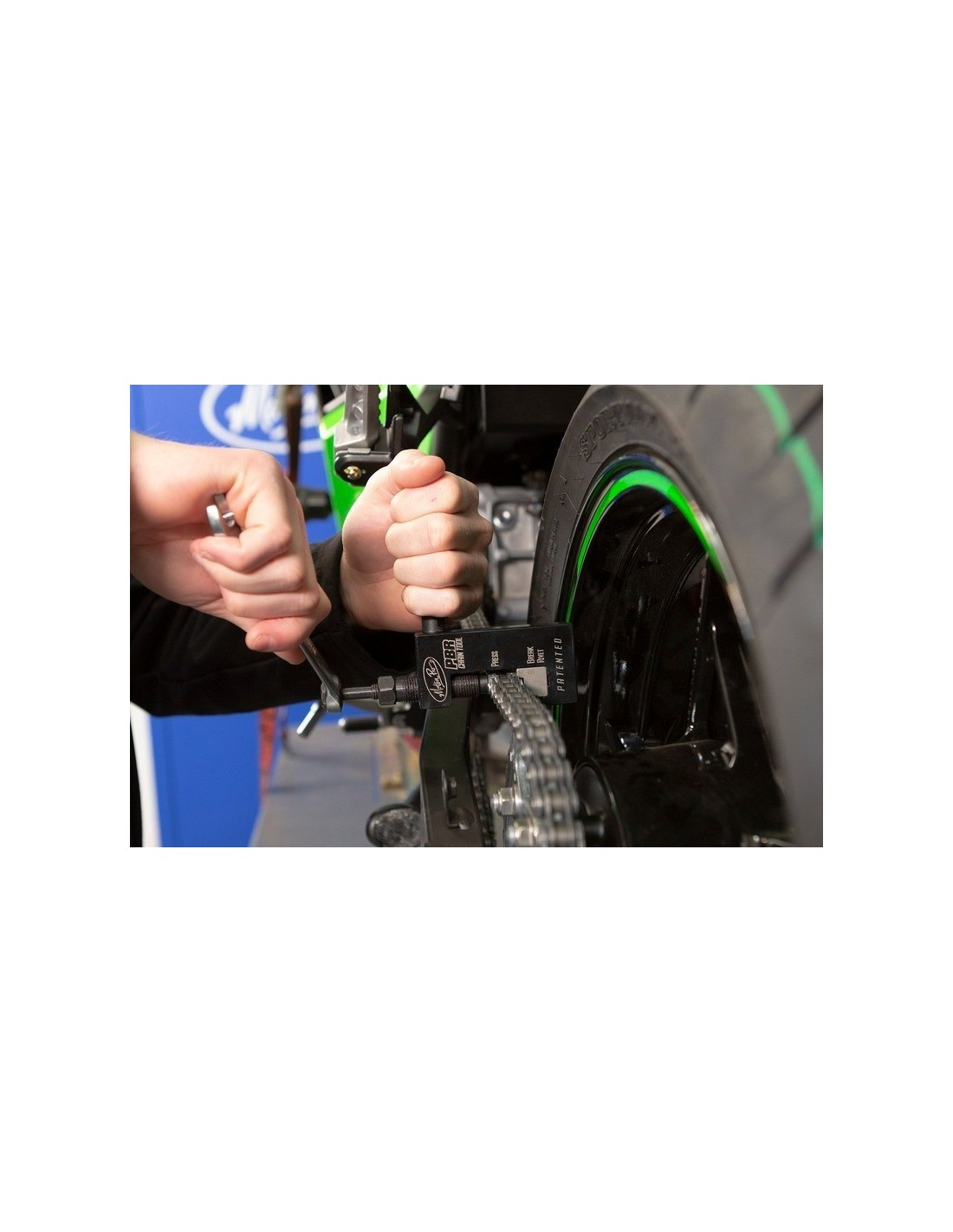 - Para prensar y remachar cadenas 520, 525 y 530 con una única y práctica herramienta