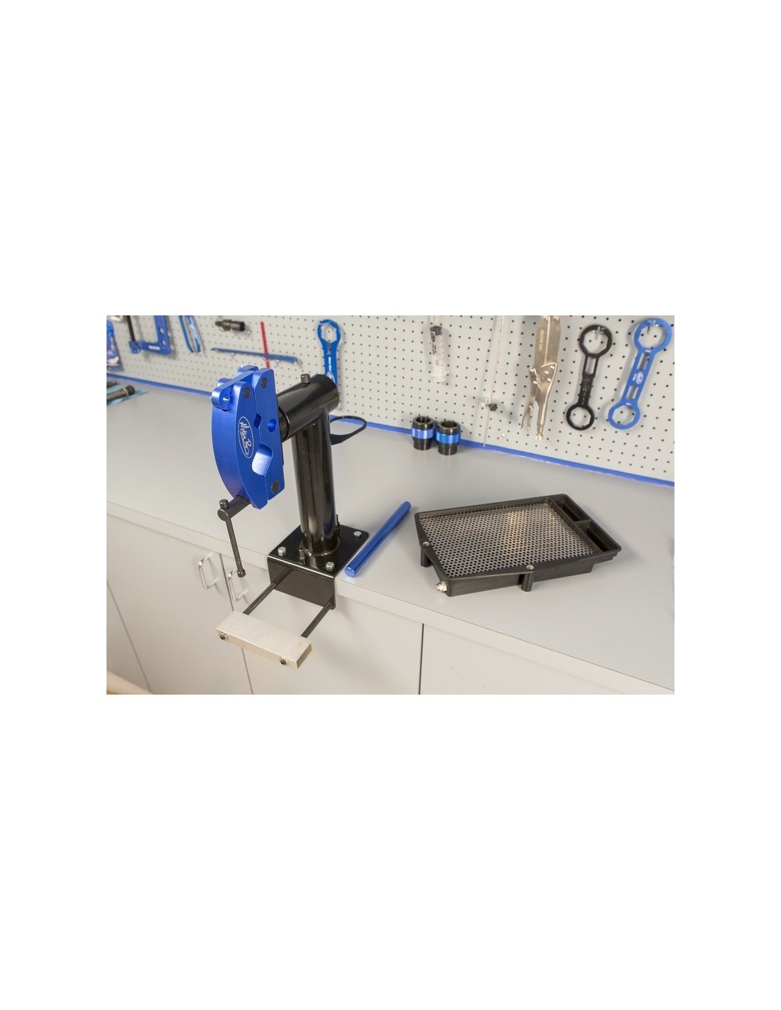 Dise ado para que la revisión de la suspensión sea más fácil y rápida Mantiene seguros amortiguador y/o horquilla cuando cambias el aceite o los retenes, o reajustas la suspensiónGracias a su cabeza pivotante, podrás sujetar estas partes en cualquier posición, con topes mecánicos cada 45 gradosMordazas de aluminio, capaces de sostener partes cilíndricas usando un sistema de cuatro puntos de sujeciónLa más grande es capaz de sostener diámetros entre 39 y 69 mmLa más peque a puede sostener diámetros entre 14 y 39 mmSu estructura es de acero —dura pero con un dise o compacto—, con cuatro puntos preperforados en la base para poder montarla con seguridad a cualquier bancoBandeja de goteo móvil, con rejilla metálica y tapón roscado de drenaje CÓMO FUNCIONA CON LAS HORQUILLAS El perno de la mordaza levanta y sujeta el deslizador de horquilla para que puedas extraer los guardapolvos y los anillos de retención de las juntas de horquillaLa barra deslizadora, ajustable, sostiene la horquilla mientras se realiza el purgado de aire durante el reensamblaje, además de ser una base perfecta para aumentar, ajustar o realizar mediciones del nivel de aceite de la horquilla.Se puede usar como ayuda para extraer el ensamblaje de la válvula de compresión (requeriría el uso de un eje frontal) CÓMO FUNCIONA CON LOS AMORTIGUADORES Mantiene el amortiguador sujeto alrededor del cuerpo, eje o depósito del mismoFacilita la extracción de la barra del amortiguador y del retén de la cabezaFacilita la extracción de los tapones de depósito, los pistones de la cámara de aireSostiene el amortiguador para extraer rodamientos de aguja o de esféricosSostiene el amortiguador para extraer muelles