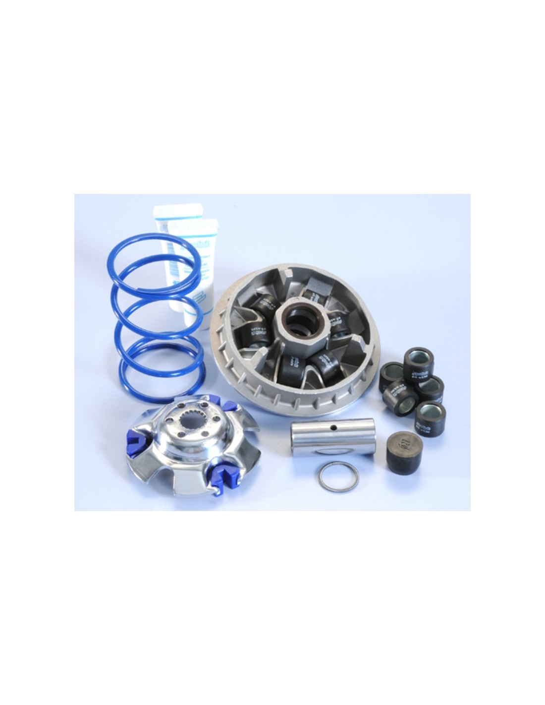 Polini’s Maxi-Speed variators allow you to optimise the resistance and performance of your transmission’s variator, thanks to various brand-specific technical features. The Polini compression spring is 30% harder than the original component and, thanks to a specialised variator body, the variator’s inner lubrication remains constant. This complete steel variator is treated with nickel chrome for enhanced heat resistance.
